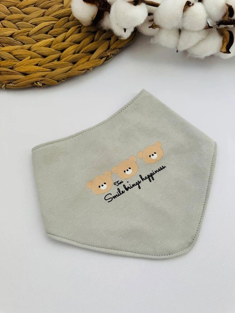 Непромокальний двосторонній нагрудники-слинявчик на кнопках з бавовни сірий з малюнком Ведмедики 40х25х25 см