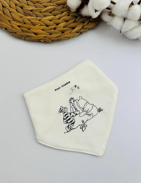 Непромокальний двосторонній нагрудники-слинявчик на кнопках з бавовни молочний з малюнком Дисней 40х25х25 см