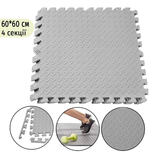 Мат-пазл татами, ластівчин хвіст, покриття для спортзалу Feel Fit 4 штуки 60*60*1 см (120*120 см) Сірий