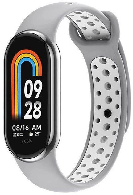 Ремінець силіконовий MRK для фітнес браслета Xiaomi Mi Band 8/9/10 Nike Style Light Gray + White (mrk6295)