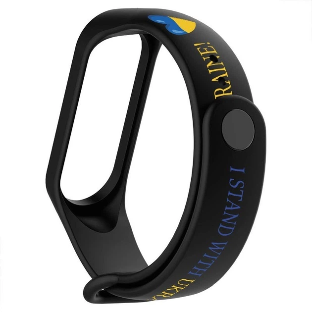 Силіконовий матовий ремінець з дизайнерським принтом для браслета Xiaomi Mi Band 7/6/5 I Stand With Ukraine ! / Я за Україну