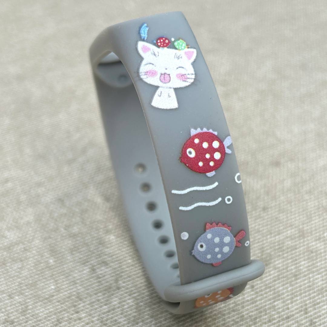 Ремінець силіконовий MRK з дизайнерським принтом Kitten 03 для фітнесу браслета Xiaomi Mi Band 5/6 з металевою кнопкою Сірий