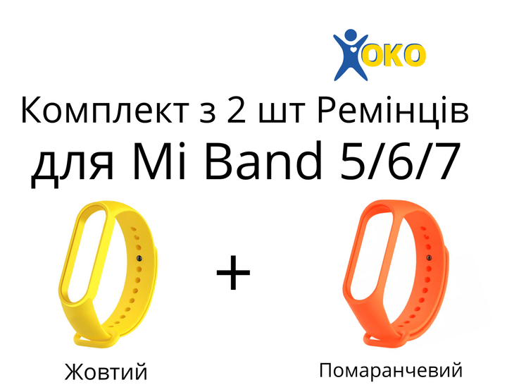 Набір 2 шт Ремінець силіконовий XOKO Sport для Xiaomi Mi Band 5/6/7 Yellow + Orange