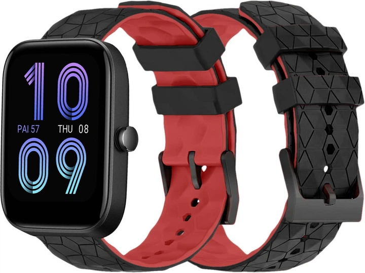 Силіконовий ремінець Lunor для Amazfit Bip 3 / Pro Black Red (41690-44)