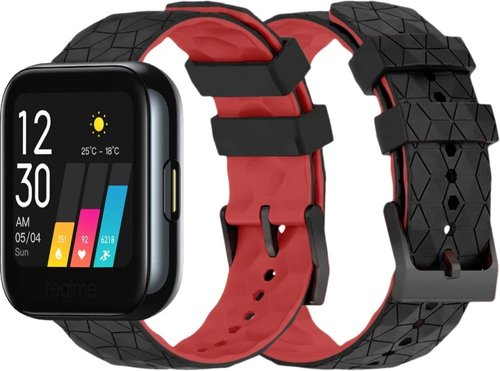 Силіконовий ремінець Lunor для Realme Watch Black Red (41715-44)