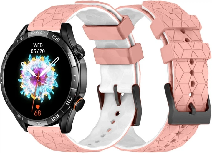 Силіконовий ремінець Lunor для Haylou Watch 4 (LS25) Pink White (42539-52)