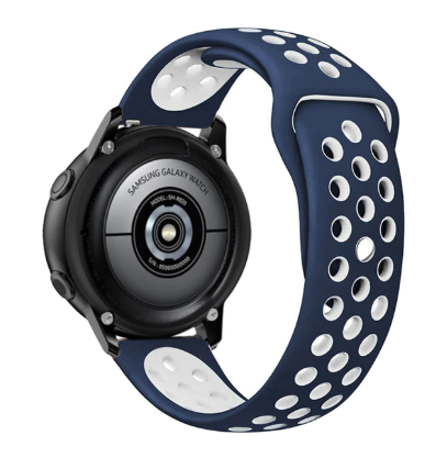 Ремінець для Samsung Active | Active 2 | Galaxy watch 42mm | Galaxy Watch 3 41 mm силіконовий 20мм перфорований Синьо-білий