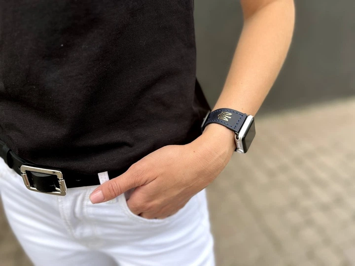 Ремінець WasBorn UA gold для Apple Watch 41 мм M/L (чорний/чорний)