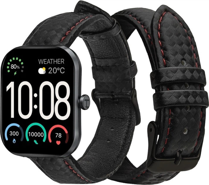 Шкіряний ремінець Carbon для Haylou Watch S6 Black Red (42409-44)