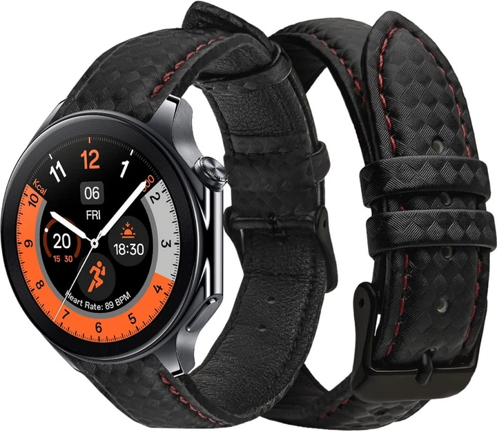 Шкіряний ремінець Carbon для OPPO Watch X Black Red (42973-44)