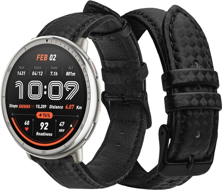 Шкіряний ремінець Carbon для Amazfit Active 2 (Round) Black (42098-2B)