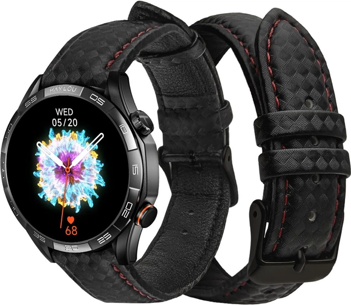 Шкіряний ремінець Carbon для Haylou Solar 5 (LS20) Black Red (42364-44)