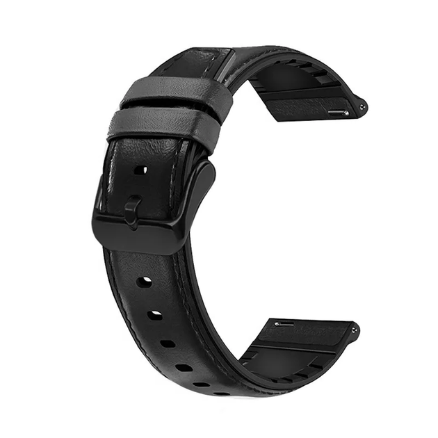 Ремінець шкіра+силікон для Amazfit GTS чорно-чорний