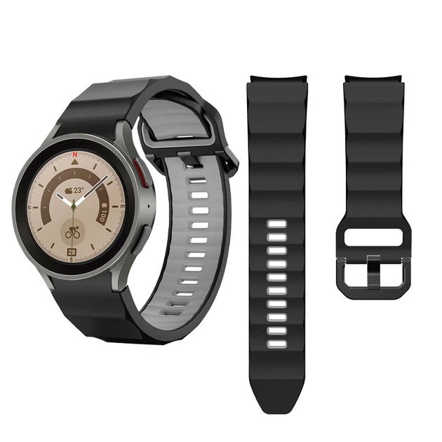 Ремінець для Samsung Galaxy Watch 4 44mm - чорно-сірий / ширина кріплення 20мм / силікон / розмір L / Watchbands Ribbed (W11