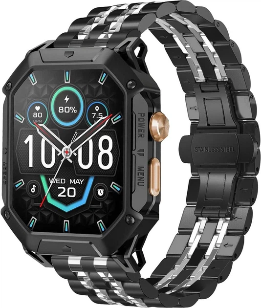 Металевий Браслет Spinye Line для Amazfit Pop 3S / 3R Black Silver (34442-03)