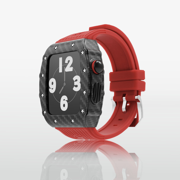 Ексклюзивний чохол із нержавіючої сталі під карбон BUCORICH Apple Watch Case 7/8/9 (45 мм) Black Red