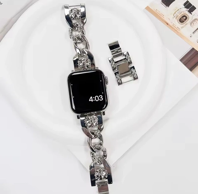 Ремінець DK для Apple Watch 42 mm/44 mm/45 mm/46 mm/49 mm Lady band Flower silver