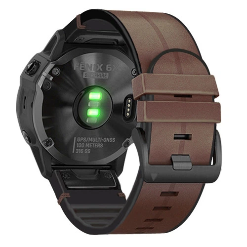 Ремінець шкіра+силікон для Garmin Fenix 6 Pro, (QuickFit 22mm) коричневий