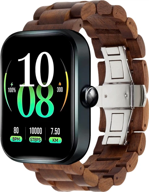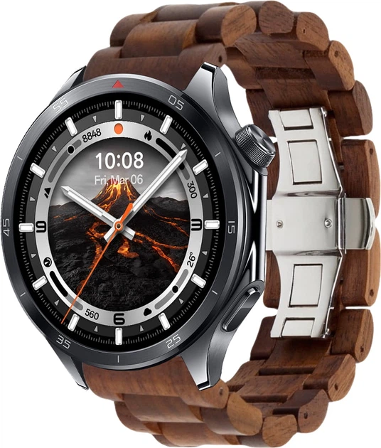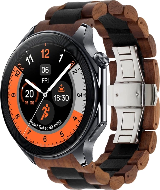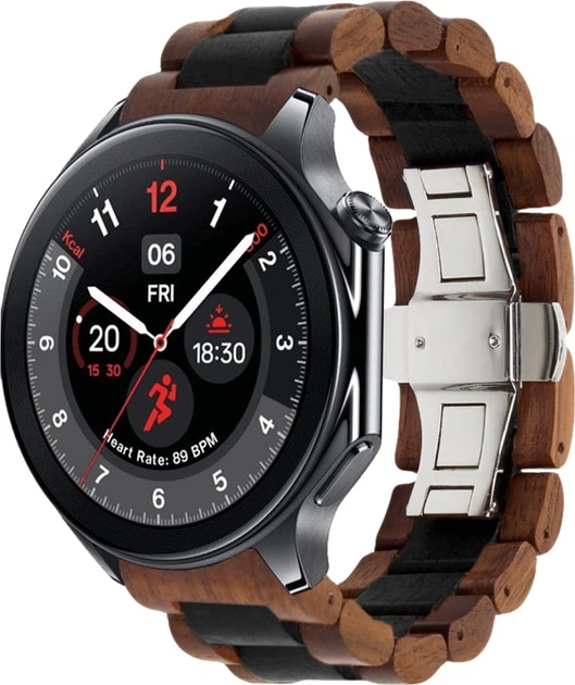 Дерев'яний ремінець WoodLock для OnePlus Watch 2 Black Brown (42776-26)