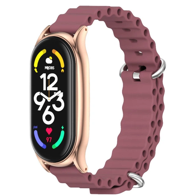 Ремінець силіконовий Mi Jobs Flex для фітнес браслета Xiaomi Mi Band 8 c металевою застібкою Бордовий + рожеве золото (mrk37
