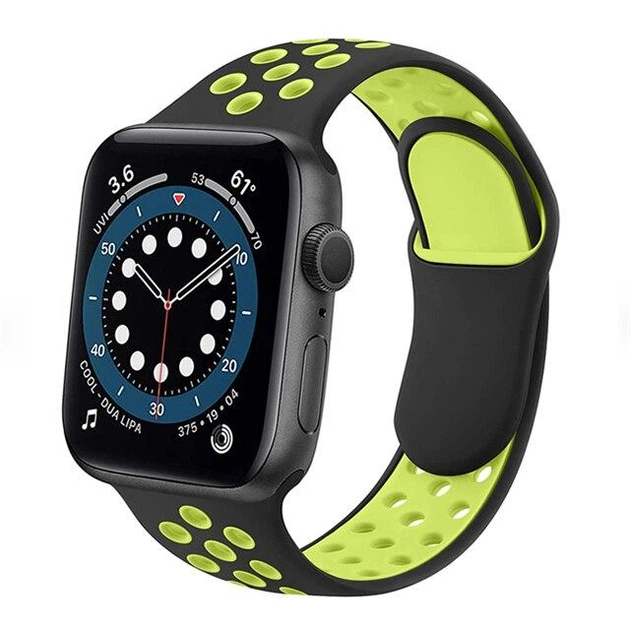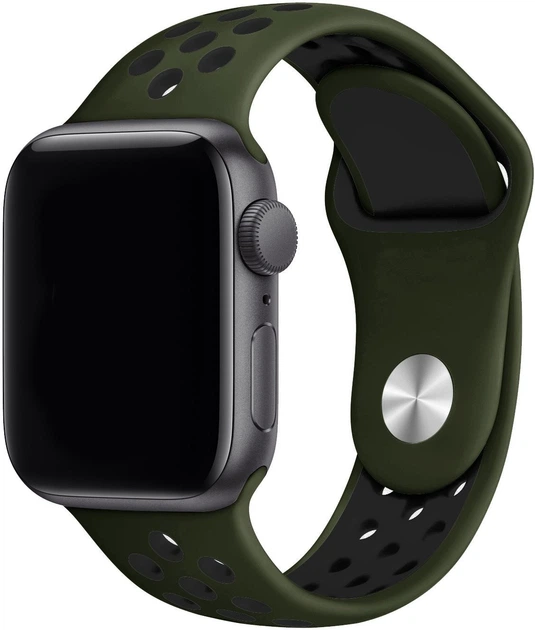 Ремінець Nike Sport Band силіконовий для Apple Watch 38mm 40mm 41mm чорно-зелений для спорту та активного відпочинку