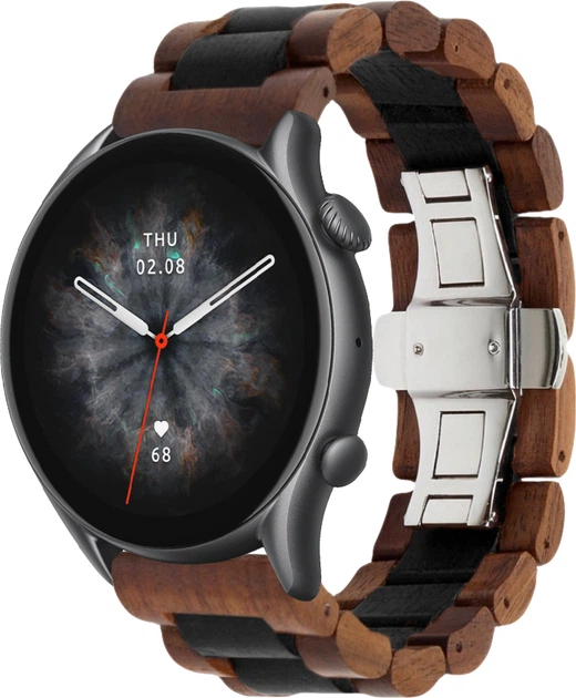Дерев'яний ремінець WoodLock для Amazfit GTR 3 Pro Black Brown (28691-26)