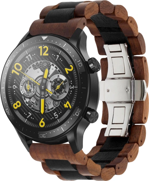Дерев'яний ремінець WoodLock для Realme Watch S Pro Black Brown (28685-26)