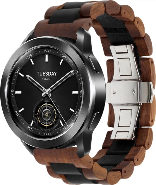 Дерев'яний ремінець WoodLock для Xiaomi Watch S3 Black Brown (37133-26)