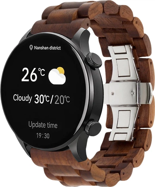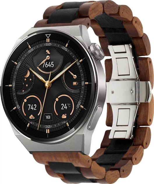 Дерев'яний ремінець WoodLock для Huawei Watch 3 Black Brown (28683-26)