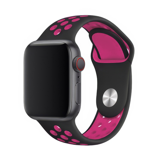 Ремінець силіконовий Nike Sport Band для Apple Watch 42mm 44mm 45mm 46mm 49mm чорно-рожевий для спорту та активного відпочин