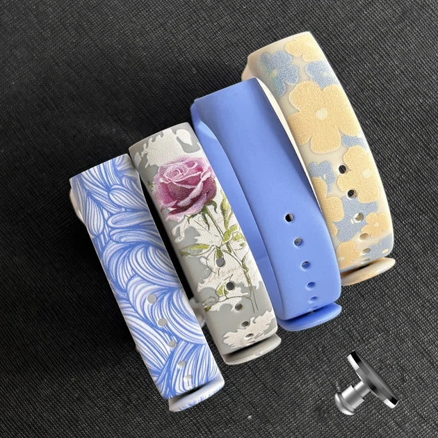 Комплект силіконових ремінців Beau Flowers Set для Mi Band 3/4 (4 ремінці) + металева кнопка (mrk6997)