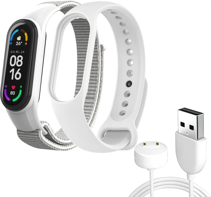 Комплект силіконових ремінців для фітнес браслетів Xiaomi Mi Band 5/6/7, Silicone, TW, зі зручною застібкою, на фітнес треке