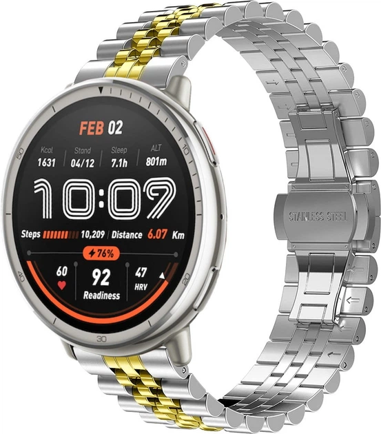 Металевий браслет Stech Line для Amazfit Active 2 (Round) Silver Gold (42107-67)