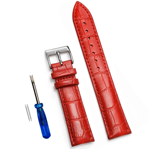Ремінець шкіряний для годинника 20 мм червоний, пряжка - срібляста