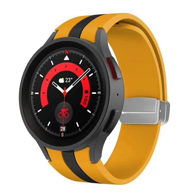Браслет Cls-way для Samsung Galaxy Watch 5 - жовто-гiрчично-чорний / ширина кріплення 20мм / силікон / Watchbands (W48-3WB78