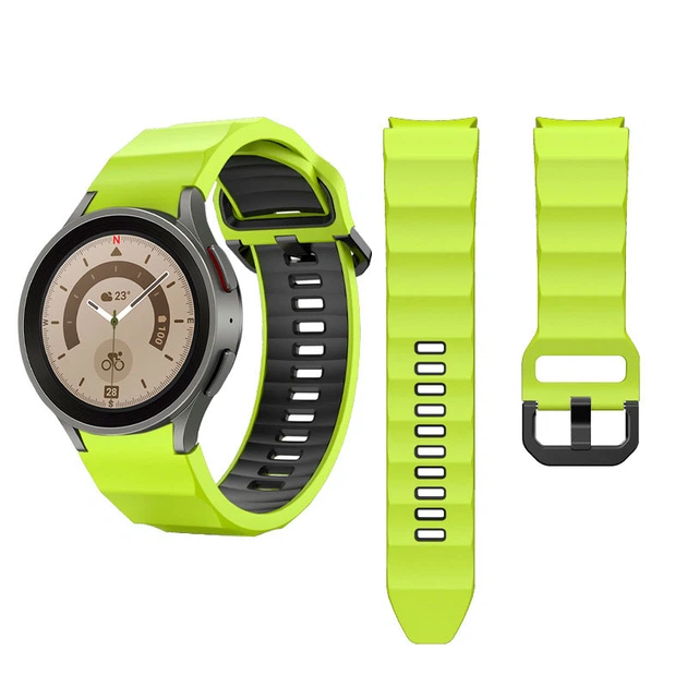 Ремінець для Samsung Galaxy Watch 4 44mm - зелено-чорний / ширина кріплення 20мм / силікон / розмір L / Watchbands Ribbed (W