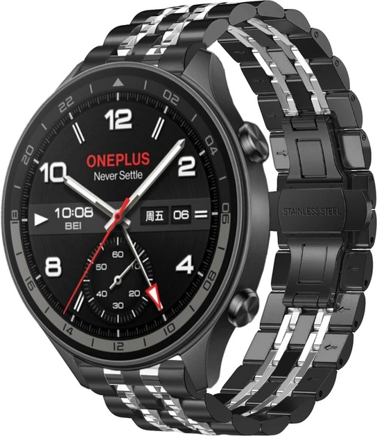Металевий браслет Spinye Line для OnePlus Watch 2R Black Silver (42832-03)