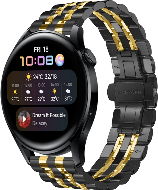 Металевий Браслет Spinye Line для Huawei Watch 3 Black Gold (28975-02)