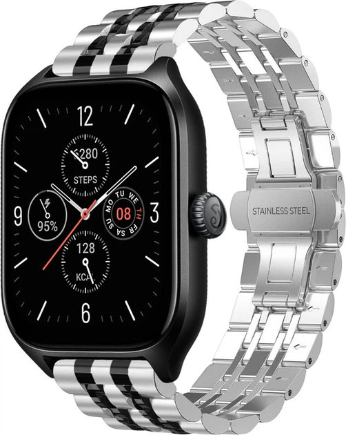 Металевий Браслет Spinye Line для Amazfit GTS 4 / Mini Silver Black (29518-69)