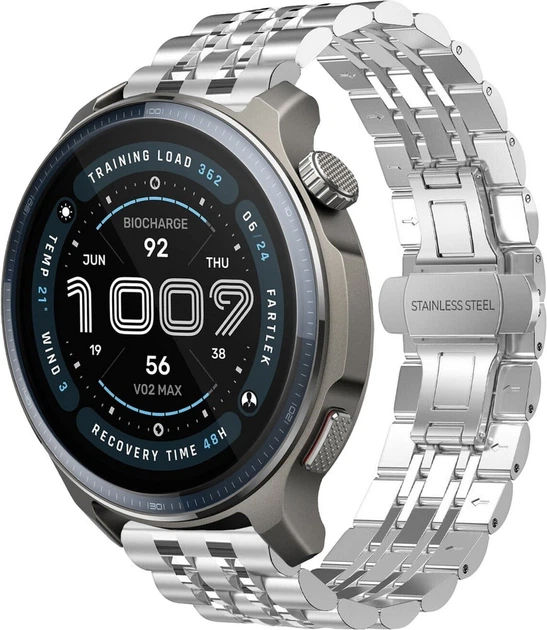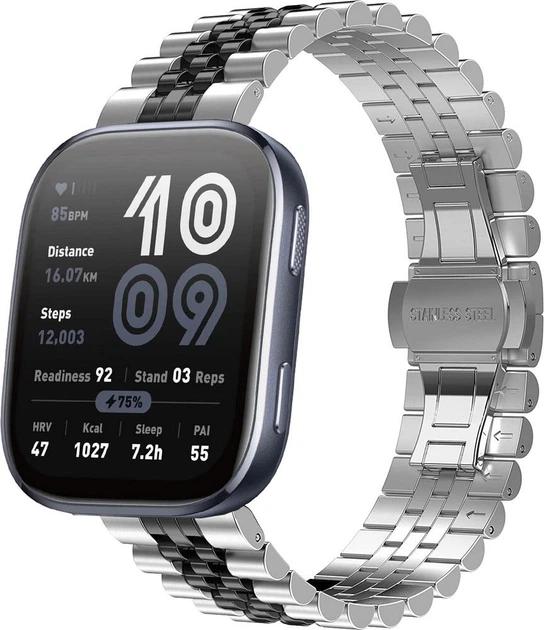 Металевий Браслет Stech Line для Amazfit Bip 6 Silver Black (40531-69)