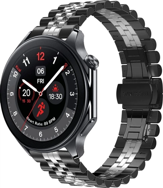 Металевий браслет Stech Line для OnePlus Watch 2 Black Silver (42788-03)