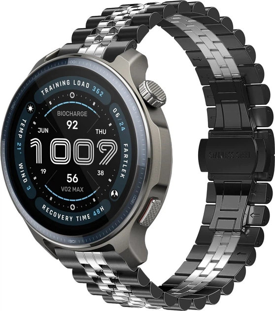 Металевий Браслет Stech Line для Amazfit Stratos Black Silver (29148-03)