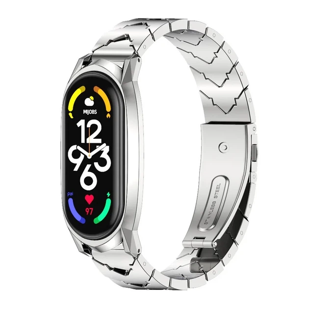 Металевий неіржавкий ремінець Mijobs для Xiaomi mi band 7 срібло V образний 220 мм