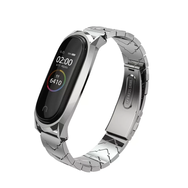 Металевий нержавіючий ремінець Mijobs для Xiaomi mi band 3 4 5 6 срібний V образний 220 мм