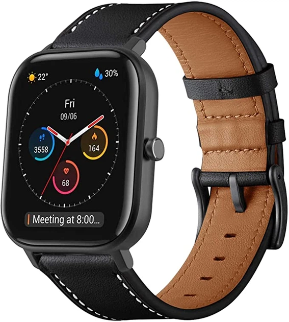 Ремінець для Xiaomi Amazfit GTS 2 - чорний / Watchbands Standart / ширина кріплення 20мм / розмір L / шкіряний (WB0029STANDA