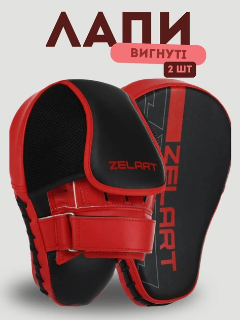 Лапа боксерська вигнута тренувальна PU ZELART BO-9057 для боксу чорно-червона