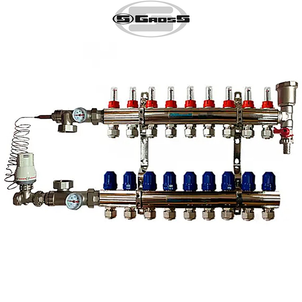 Колекторний вузол у зборі для системи "ТЕПЛА ПІДЛОГА" GROSS на 9 виходів (Німеччина)