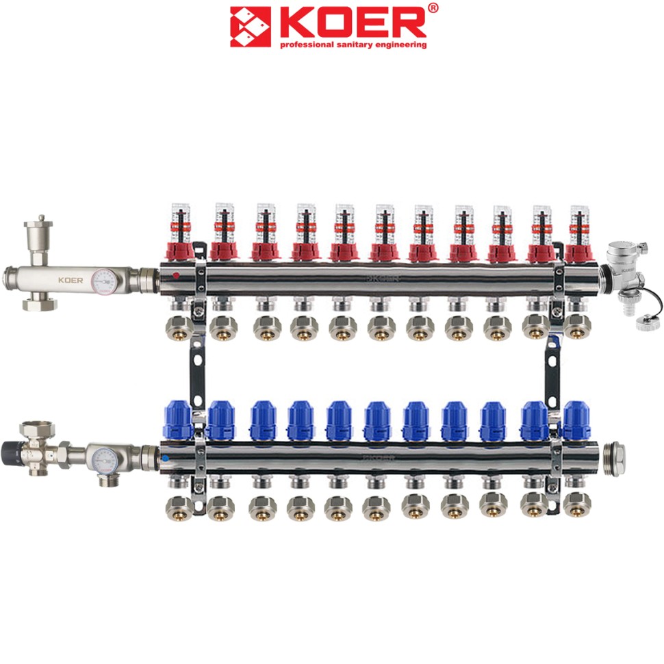Вся продукція торгової марки "KOER" виготовляється на новітньому устаткуванні Чеського заводу "Dieffenbacher-cz". Купуючи товар торгової марки "КОЄР" Чехія, ви отримаєте високу якість за прийнятною ціною. Колектори для теплої підлоги – основний механізм розподілу та контролю параметрів теплоносія у системі. Від того, наскільки якісно і точно працює колектор, а також яким додатковим