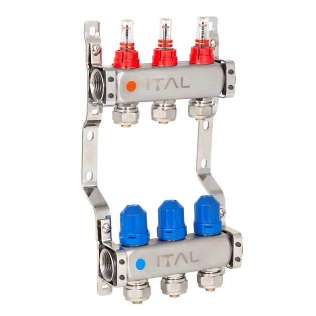 Колектор для теплої підлоги ITAL 3 контури з витратомірами 1"/3/4" HC1-03