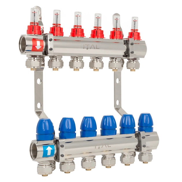 Комплект колектора з витратомірами ITAL IT06-H2001 1"-3/4", євроконус, 6 виходів, латунь